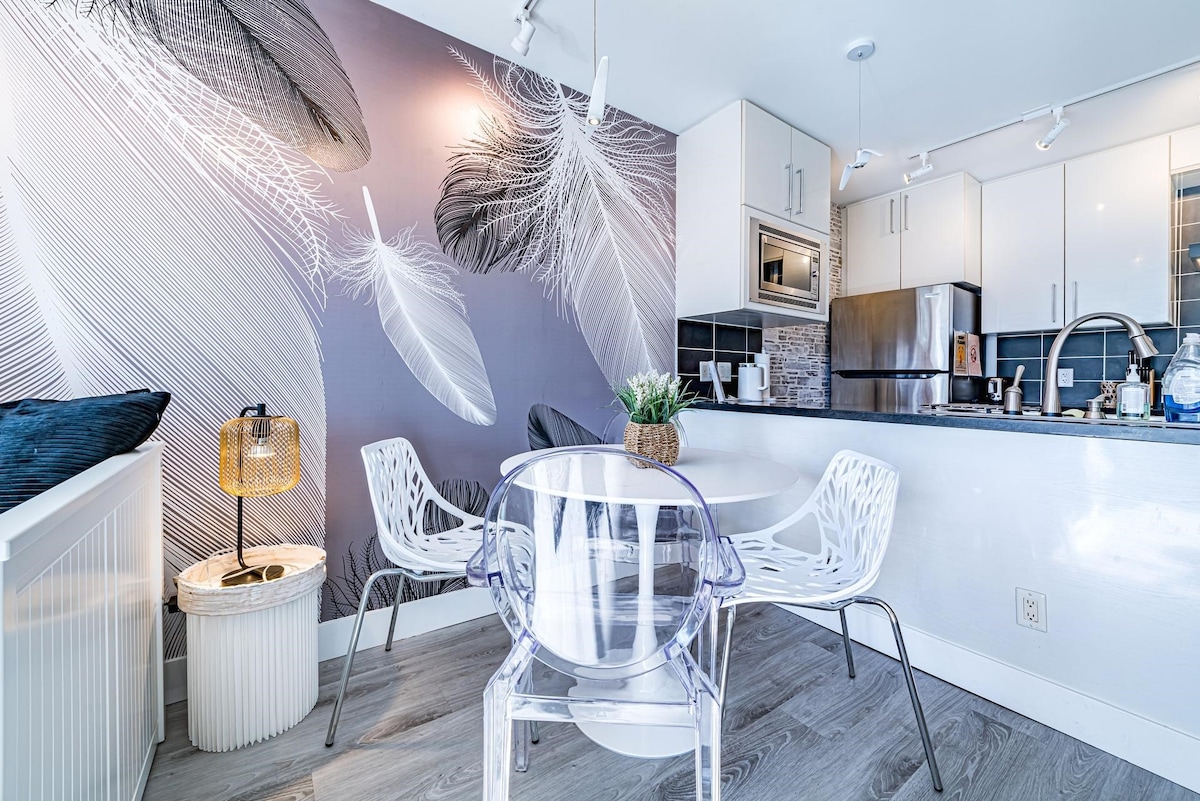 Willkommen in diesem charmanten Rückzugsort mit 2 Schlafzimmern im Herzen von Gastown, nur wenige Minuten vom BC Place und der Rogers Arena entfernt. Diese komplett renovierte, geräumige Wohnung im Stil der Mitte des Jahrhunderts verfügt über ein Queensize-Bett, ein Einzelbett und ein Schlafsofa, die bequem bis zu 4 Gäste beherbergen. Der warme, einladende Raum verfügt über eine gut ausgestattete Küche, Klimaanlage, WLAN, Parkplatz und ein eigenes Büro, perfekt für Arbeit oder Freizeit. Ideal für Familien, Freunde oder Paare, mit 24/7-Gastgeber-Support, um einen reibungslosen und sorgenfreien Aufenthalt zu gewährleisten.