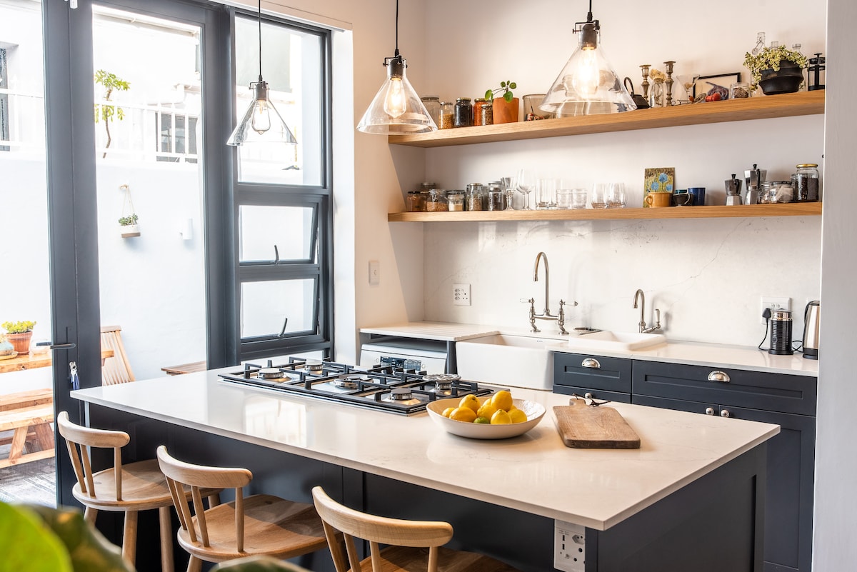 Dieses wunderschöne viktorianische Ferienhaus liegt direkt an der Sea Point Promenade und verfügt über ein ultra-stilvoll renoviertes Interieur. Das Zwischengeschoss im Loft-Stil dient als drittes Schlafzimmer oder als Yogastudio oder Büro oder einfach nur als ruhiger Rückzugsort. Die Cafés und Restaurants von Sea Point sind nur wenige Gehminuten entfernt und die besten Strände von Kapstadt sind gleich um die Ecke. Sonniger Innenhof zum Entspannen und Abende auf der Veranda, während der Kamin für Gemütlichkeit sorgt. 2 Betten. Zusätzliche Schlafcouch im Zwischengeschoss. Sichere, kostenlose Parkplätze an der Straße. UPS