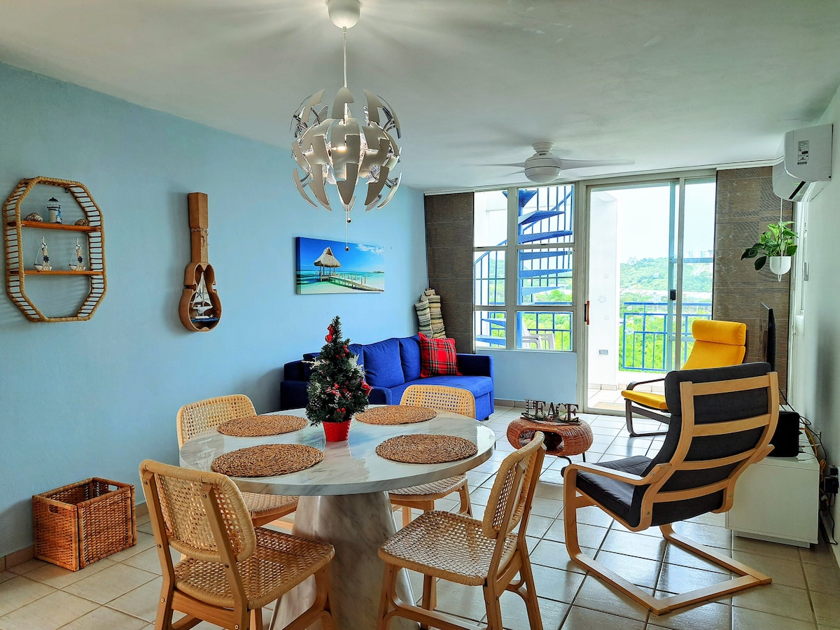 Dieses Airbnb ist gemütlich und warm, mit Holzmöbeln und weichen Textilien, die zum Entspannen einladen. Die Dekoration ist inspirierend, mit einzigartigen Details, lokalen Kunstwerken und Pflanzen, die eine kreative Atmosphäre schaffen. Der Raum ist entspannend, mit einer Terrasse, die von einer spektakulären Aussicht auf die Ostküste von PR umgeben ist, ideal für Familien, mit einer funktionalen Küche und Spielbereichen, die jedem das Gefühl geben, zu Hause zu sein. Darüber hinaus ist die Nachbarschaft sicher und garantiert einen ruhigen und komfortablen Aufenthalt.