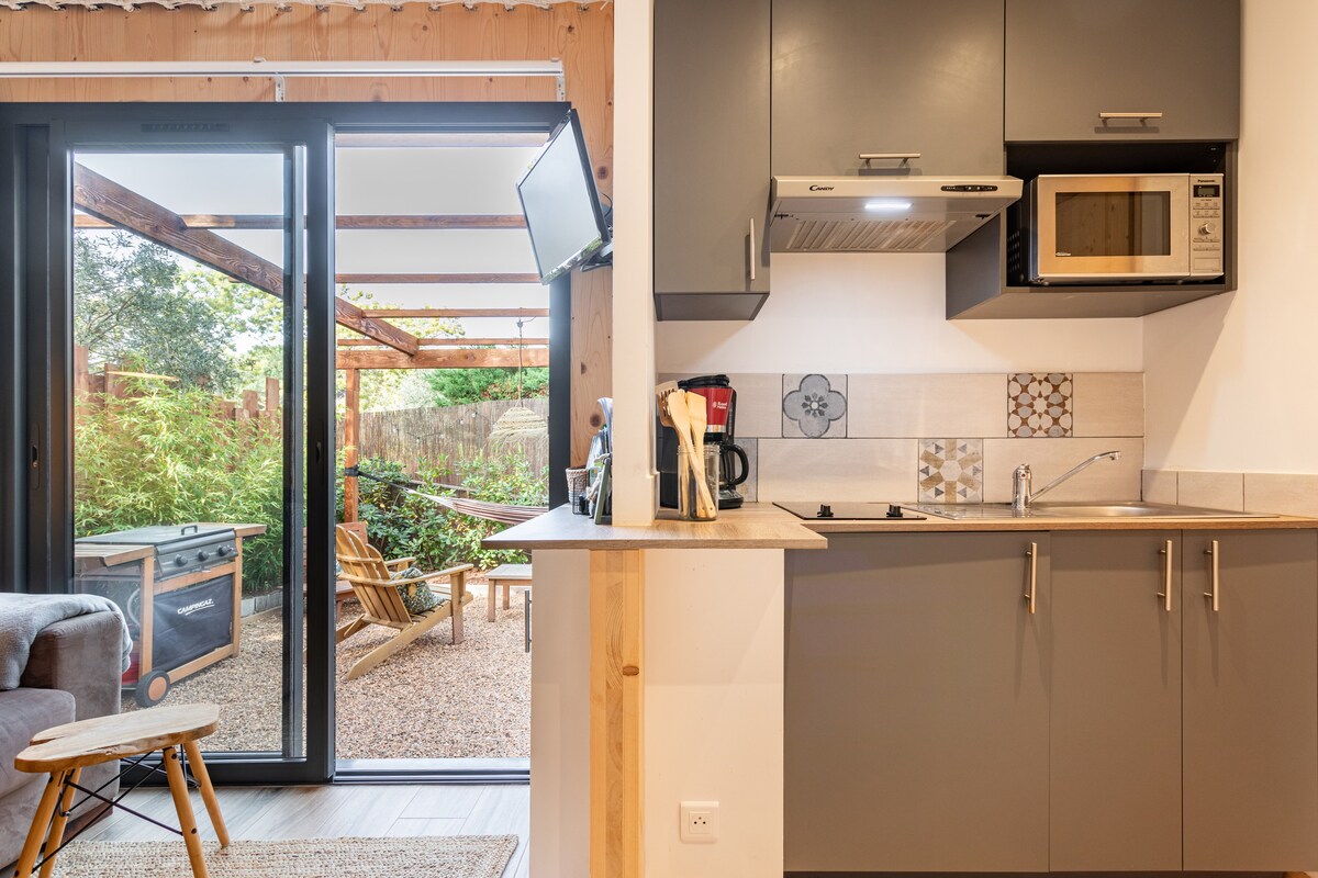 Eingebettet in einen bewaldeten Raum wurde dieses 30 m² große Studio aus Massivholz in der Verlängerung einer Erweiterung des Hauses gebaut. Es hat einen privaten Garten und einen Parkplatz. Ruhig, beruhigend und umweltbewusst, lädt dieser Kokon zum Ausruhen ein. 5 Autominuten von den Stränden, dem Esterel-Massiv und dem Stadtzentrum entfernt, können Sie auch unsere Fahrräder ausleihen und das Meer über die Radwege erreichen.
