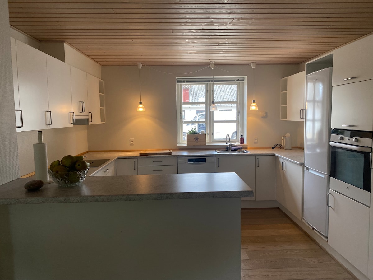 Schönes Ferienhaus von 90 m ² mit Loft in ruhiger Umgebung, in der Nähe des Fjords und eines schönen Gemeinschaftsbereichs mit einem Badesteg in den Sommermonaten. Vom Haus aus gibt es keinen Blick auf das Wasser. Alles ist im Preis enthalten, Strom, Wasser, Handtücher, Bettwäsche, Geschirrtücher und Grundnahrungsmittel wie Öl, Zucker und Gewürze. Der Holzofen ist die Hauptheizquelle, es gibt Elektroheizung im Badezimmer etwas Fußbodenheizung, die eingeschaltet ist, wenn der Strom billig ist. Der Garten ist komplett abgelegen mit Platz für Spiele, Sport und Spiele.