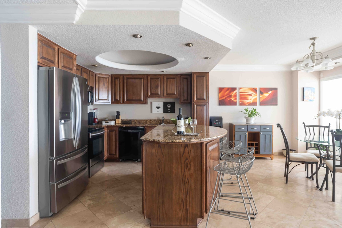 Come enjoy this beautiful condo with amazing views and lots of entertainment just steps away! It is newly renovated and decorated. Whether you are wanting a relaxed getaway or a fun filled one, we got that covered. From the most exclusive views, to the world class restaurants and bars of course you can't forget about the lobster ! We are located between san antonio del Mar and the famous Rosarito . We are here to help you create the vacation you desire