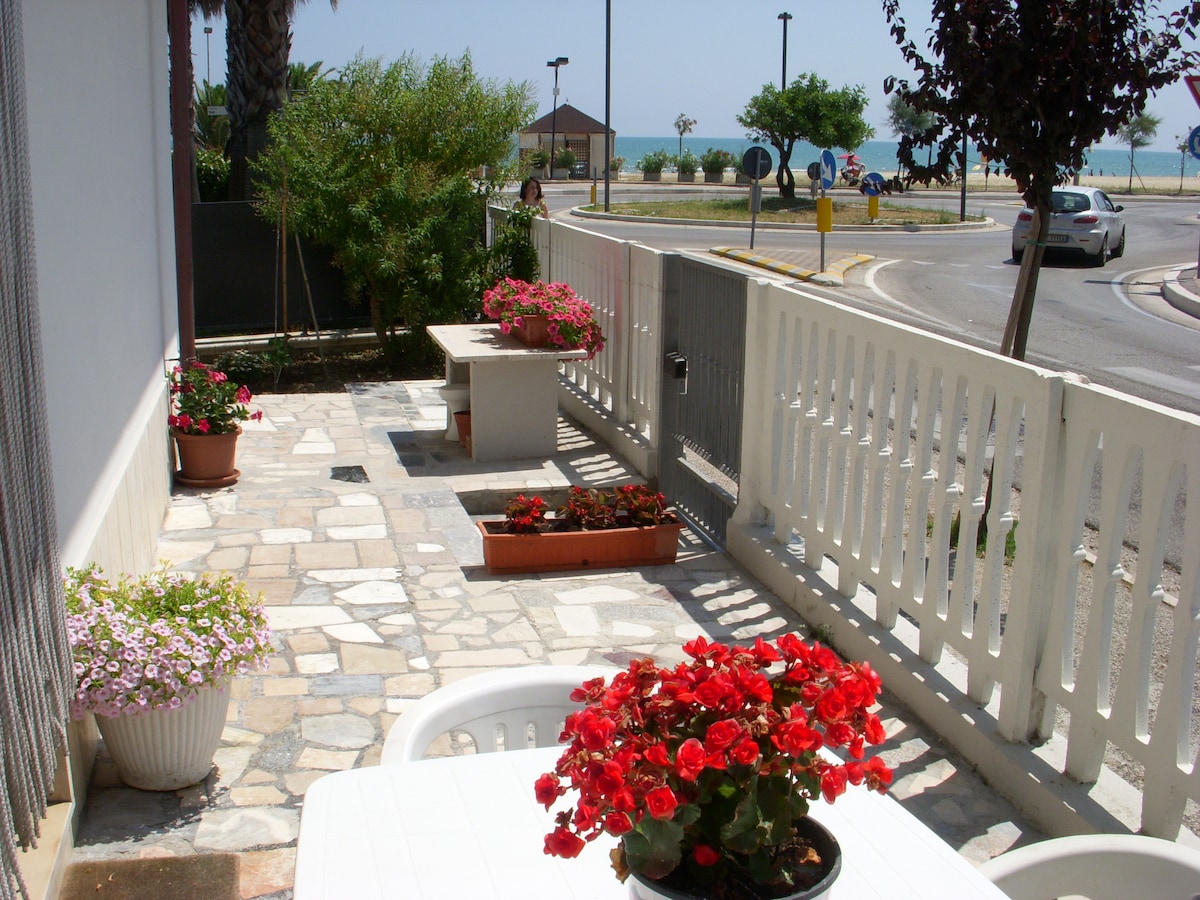 Intero appartamento in affitto al piano terra con doppio ingresso (uno in condominio, l'altro privato), composto da: salone e cucina, due camere e un bagno, sgabuzzino e corte esterna privata. Entrambe le camere sono fornite di letto matrimoniale, nel salone ci sono due divani letto singoli. Vicinissimo al mare. In zona sono presenti numerosi servizi ed esercizi commerciali, bar, ristoranti, pizzerie, centro commerciale, chalet e spiaggia libera.