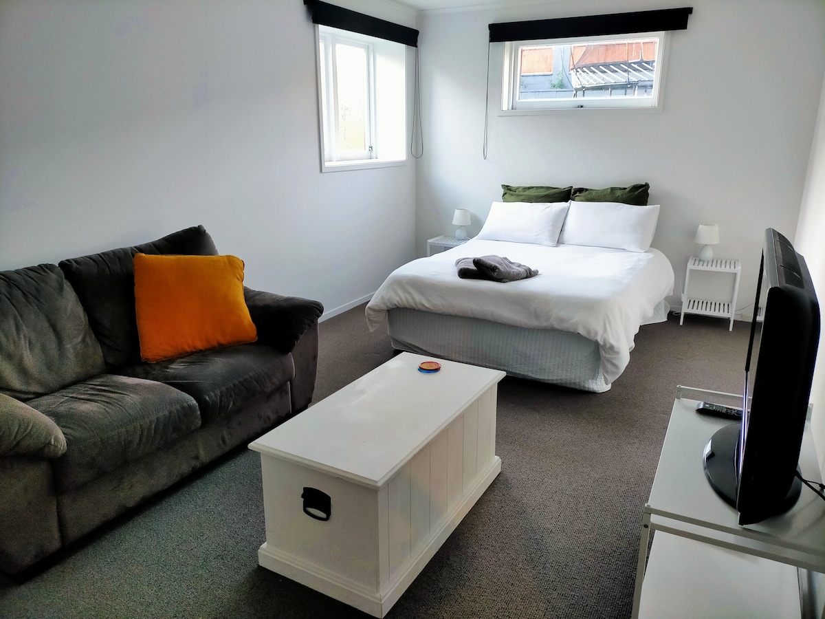 Lancewood Loft ist ein geräumiges, warmes und sonniges Studio, kürzlich renoviert, mit eigener Terrasse und Garten und mit einfachem Zugang. Modernes Badezimmer, Küchenzeile und Wärmepumpe. Kann ein Paar oder eine Familie beherbergen, mit zusätzlichen 2 Personen auf Schlafsofa und Matratzen auf dem Boden. Nur wenige Geh- und Fahrradminuten vom Redwoods Forest entfernt und mit herrlichem Blick darauf. Privater und sonniger, angelegter Terrassen- und Gartenbereich. Parkplätze an der Straße. Sicher, zentral und günstig gelegen.