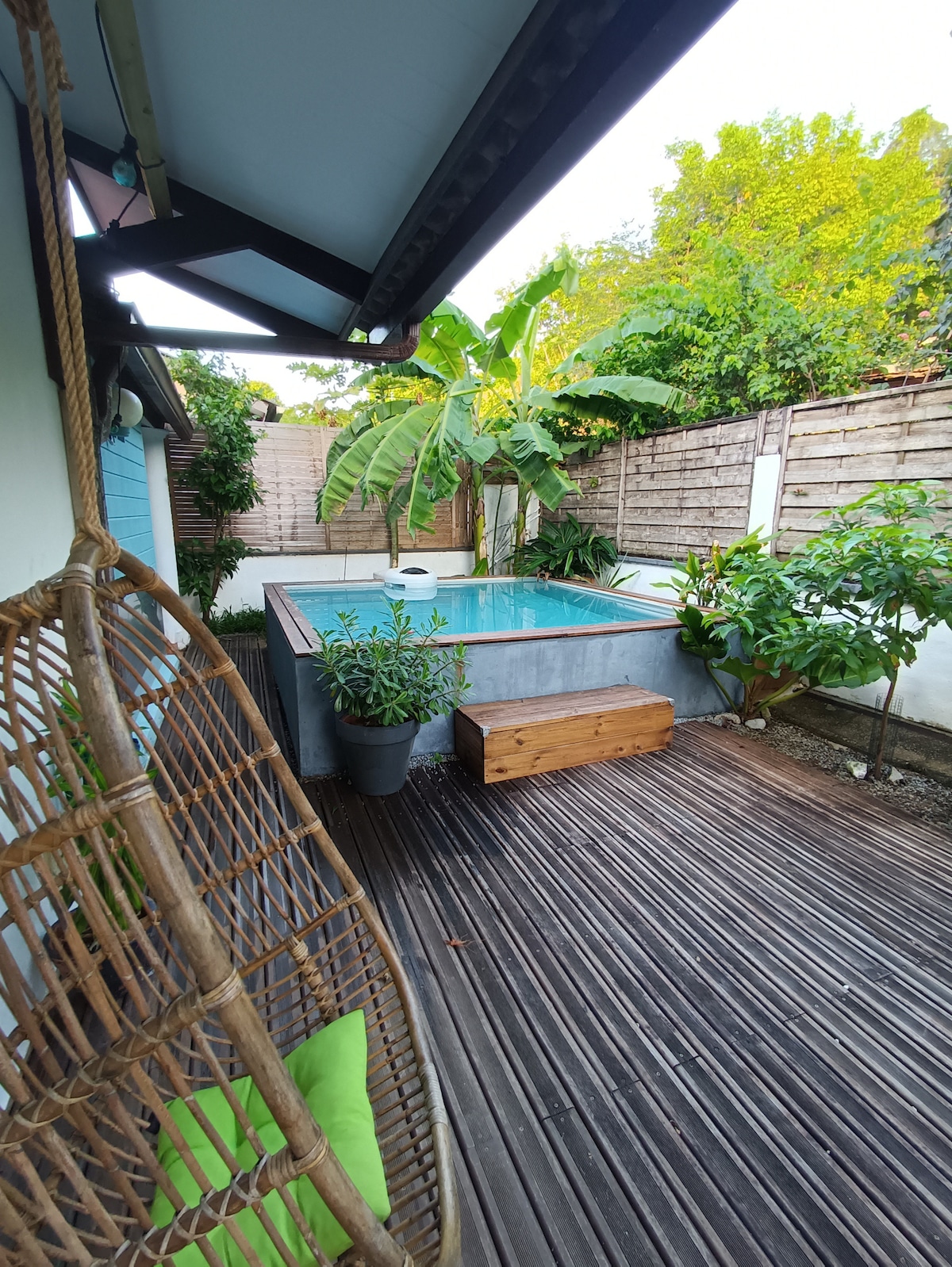 7 Kilometer von der Hauptstadt entfernt, im Herzen eines ruhigen Viertels von Rémire-Montjoly, entdecken Sie diese unabhängige Lodge (32 m², für maximal 3 Personen), ideal für Ihre beruflichen Aufenthalte oder zum Ausruhen. Draußen finden Sie eine Terrasse mit Pool, auf der Sie sich an der frischen Luft entspannen können. In der Nähe aller Annehmlichkeiten und des Stadtzentrums, 10 Minuten vom Strand und den Wanderwegen entfernt.