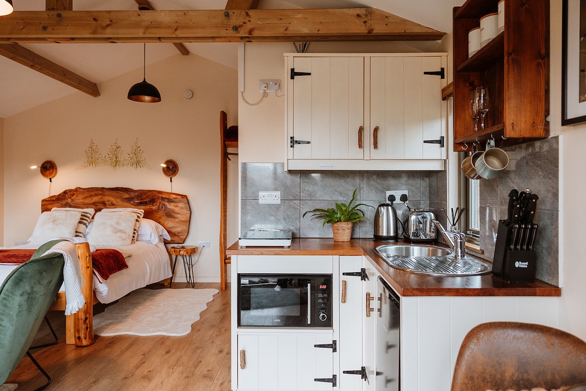 Unsere handgefertigte Holzhütte mit eigenem Bad befindet sich in einem kleinen Wald auf dem Gelände einer Schaffarm mit einem freien Blick über das Tal im malerischen Shropshire. Sie hat alles, was du brauchst, um dich von der realen Welt zurückzuziehen, sei es für eine gemütliche Nacht vor dem Holzofen oder eine Chance, auf der Terrasse zu sitzen und die Sterne zu betrachten. Es gibt eine Fülle von Spaziergängen direkt vor deiner Haustür, du hast sogar das Glück, den Offas Dyke nur einen Steinwurf von der Hütte entfernt zu haben.