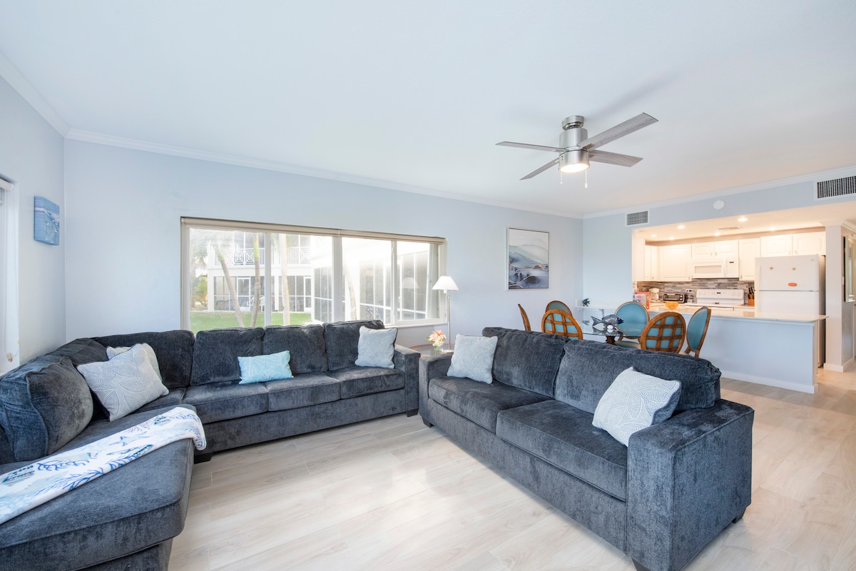 Diese 2 Schlafzimmer, 2 Badezimmer Eigentumswohnungen bieten Platz für bis zu 4 Personen und verfügen über ein Kingsize-Bett sowie ein Etagenbett mit Full-/Doppelmatratzen im zweiten Schlafzimmer. Zu den Annehmlichkeiten gehören eine voll ausgestattete Küche mit Gaskochfeld, ein Wohnzimmer mit Flachbild-TV, ein Waschtrockner und ein privater Balkon mit Blick auf den Pool des Resorts und den Kanal in der geschlossenen Wohnanlage. Gäste erhalten exklusiven Zugang zu unseren vielen Annehmlichkeiten, darunter 3 Pools, den Whirlpool, das Clubhaus, das Fitnesscenter, die Grillmöglichkeiten, das Yoga-Deck und vieles mehr.