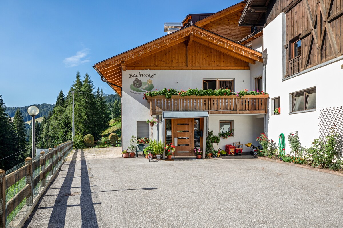Etwa 1230 m oberhalb von Völlan, umgeben von Wäldern, Bergen, Weiden und alten Bauernhöfen, liegt die ruhige und hochgelegene Ferienwohnung Judith am idyllischen Gallhof. Der Gallhof ist über eine Bergstraße erreichbar, die einer Passstraße ähnelt. Die traditionell und modern eingerichtete Ferienwohnung verfügt über einen großen Balkon mit Blick auf das Dolomitengebirge, ein Wohnzimmer, eine gut ausgestattete Küche mit Geschirrspüler, ein Schlafzimmer sowie zwei Badezimmer.