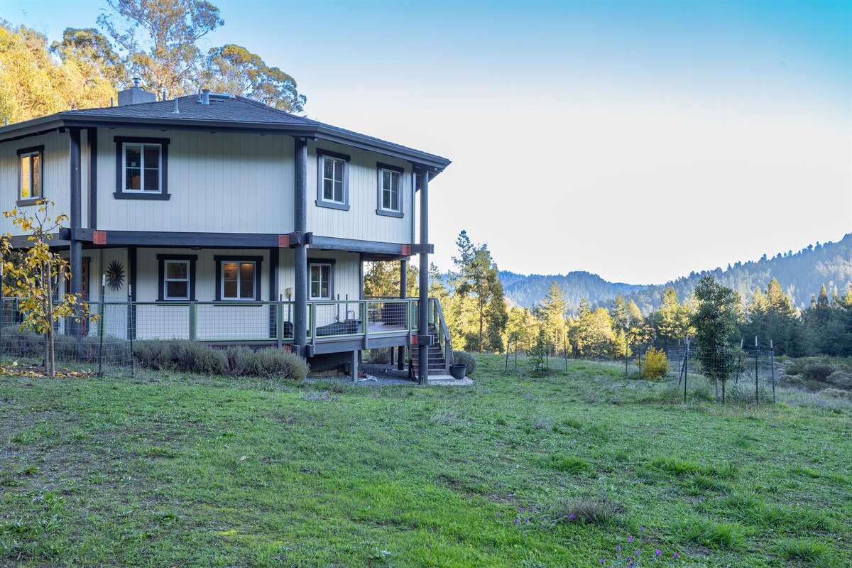 Artist’s Perch ~ Nestled among majestic coastal redwoods, Artist’s Perch has been completely reimagined - inside and out - by a rising San Francisco interior designer. The home blends refined design with natural serenity, featuring warm, artistic touches throughout and a stunning imported Slovenian outdoor sauna for the ultimate in relaxation. Step into a fully equipped kitchen that invites you to cook inspired meals, whether you prefer dining indoors or grilling outside under the redwoods.