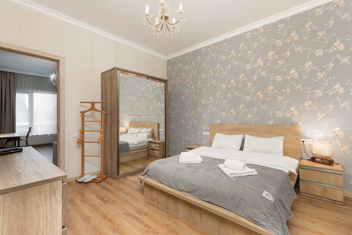 ein neues Business-orientiertes Zimmer in einem der neuesten und luxuriösen Gebäude der Stadt, im Herzen der Stadt direkt neben dem Parlamentsgebäude gelegen. Es ist nur wenige Gehminuten von der Altstadt, dem U-Bahnhof Freedom Square (400 Meter) und vielen lokalen Sehenswürdigkeiten wie dem Rustaveli-Theater, der Staatsoper, dem georgischen Nationalmuseum, Gärten und Sehenswürdigkeiten entfernt .ein geräumiges, gut geplantes Zimmer. Der Raum ist perfekt für Paare, Alleinreisende oder Geschäftsreisende.