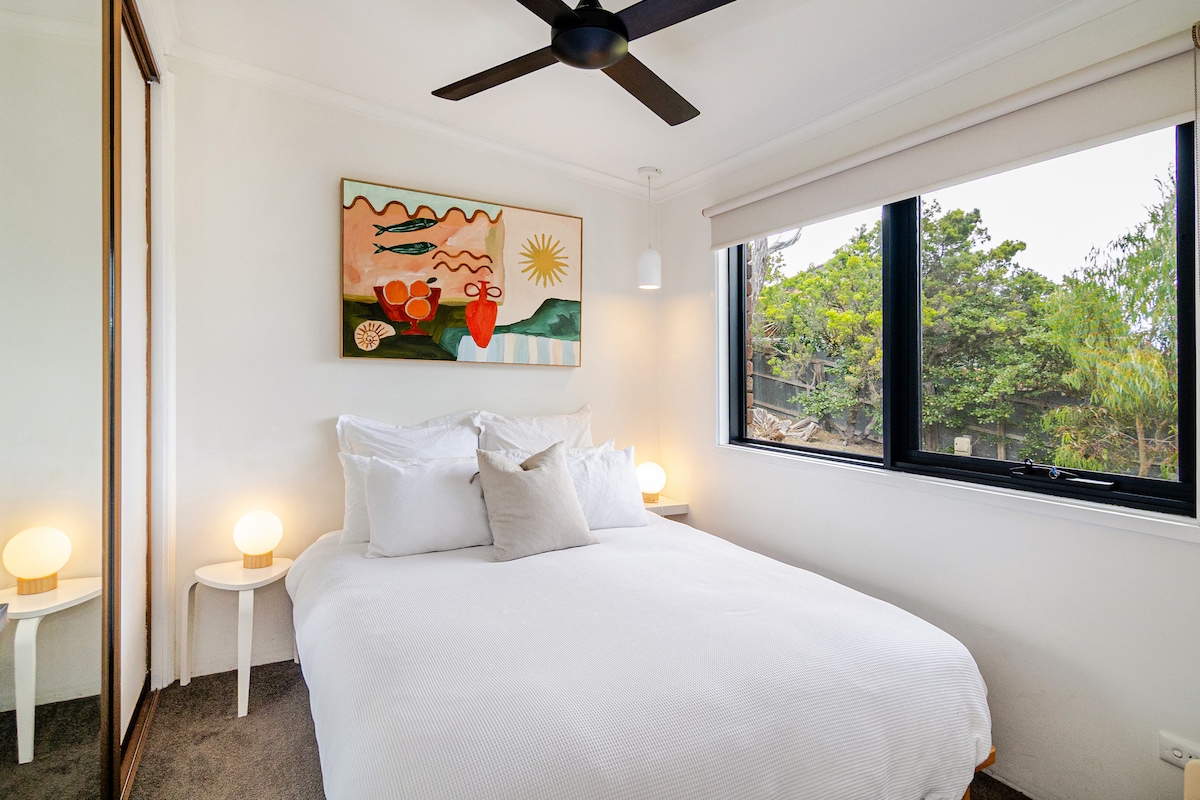 * Spare groß: 20 % Rabatt für die viktorianischen Schulferien * Dieses wunderschön eingerichtete, gut ausgestattete Strandhaus in Rye, Victoria, ist der perfekte Rückzugsort für diejenigen, die Stil und Bequemlichkeit suchen. Genieße die atemberaubende Umgebung der Moonah-Bäume von der geräumigen privaten Terrasse aus, perfekt zum Grillen oder Sonnenbaden. Dieses Strandhaus liegt im Herzen der Mornington Peninsula, nur wenige Minuten von Peninsula Springs, Weingütern, Golfplätzen, Cafés und Stränden am Bucht und am hinteren Strand entfernt.
