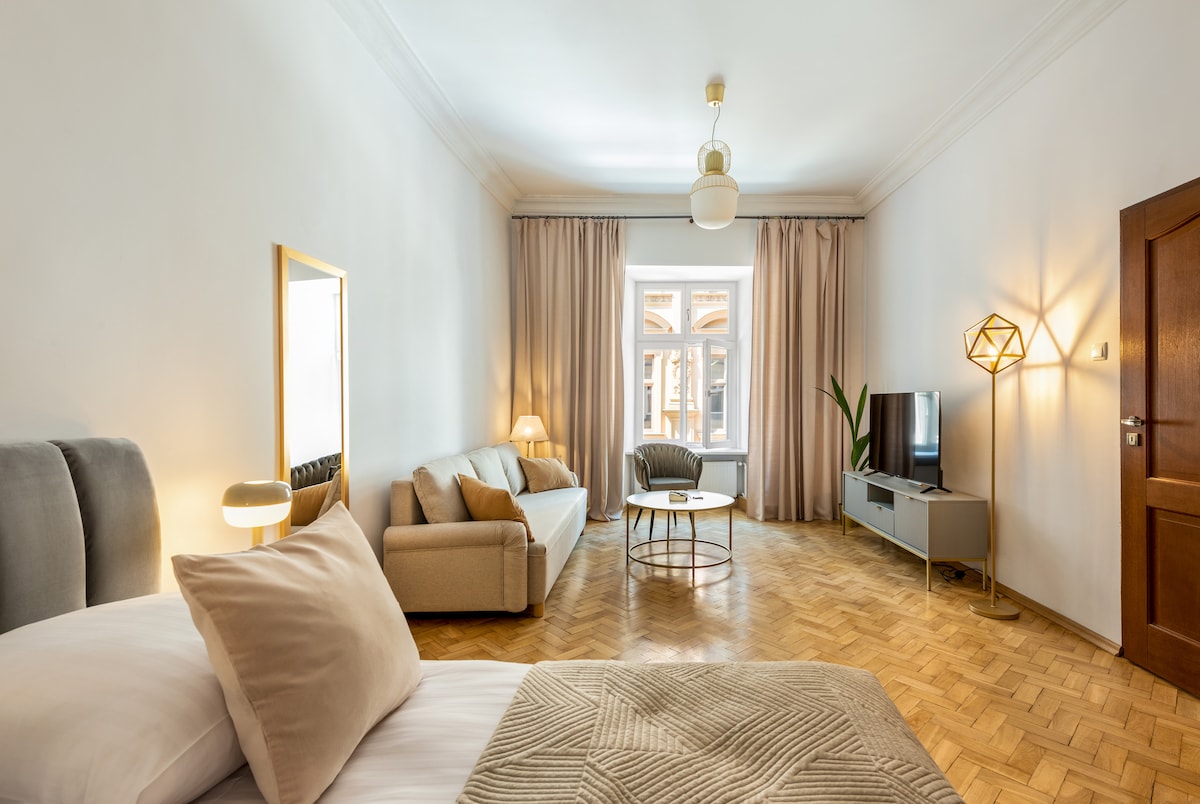 Modern apartment at Szpitalna Street is a perfect proposition for people who want to enjoy the unique atmosphere of the Old Town. This spacious studio apartment can successfully stay 4 people - all thanks to a double bed and a fold-out sofa. What's more, it includes a functional kitchen and a bathroom with a shower cabin and washingmachine.