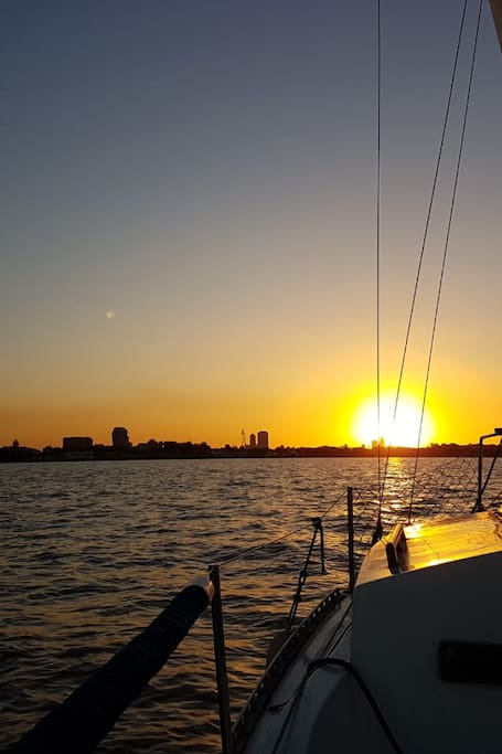 Segeln und Fotografieren bei Sonnenuntergang
