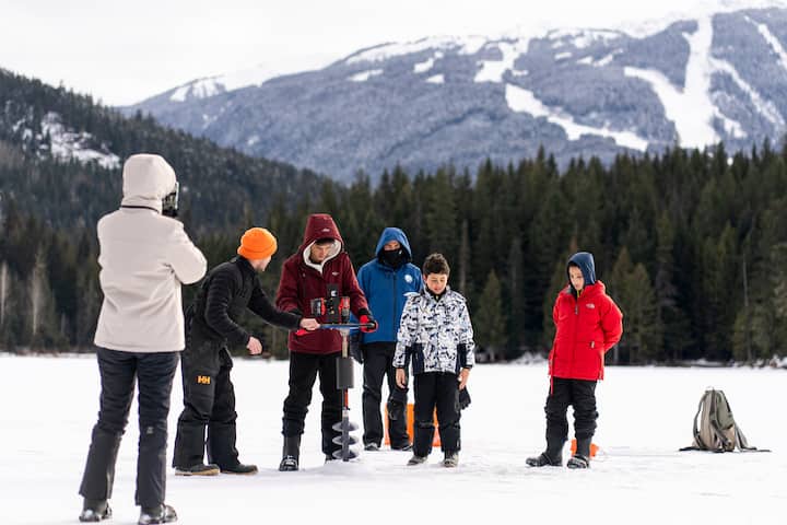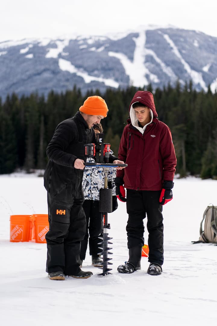 Eisangeln mit einem Kanadier