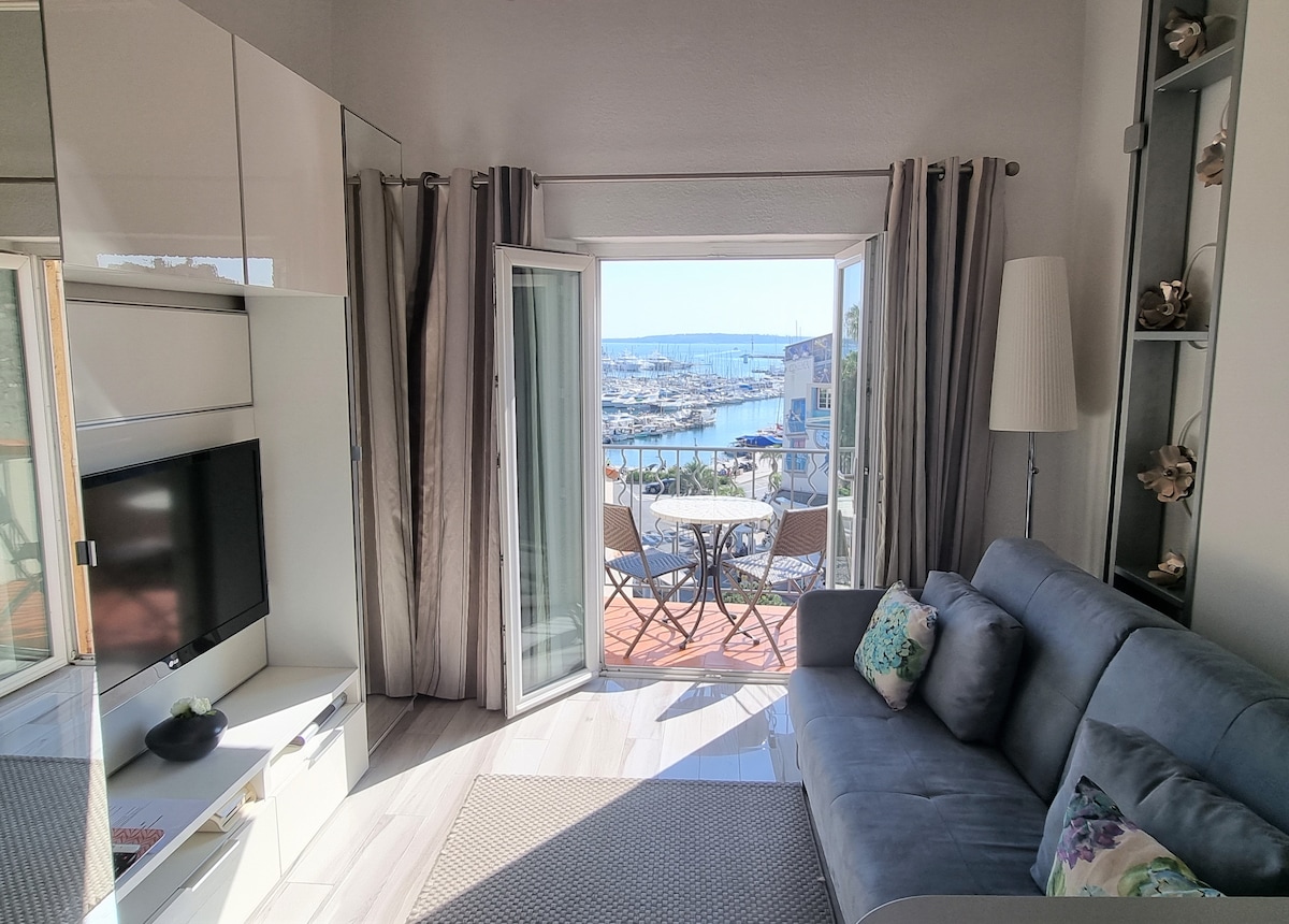 Luxuriöses, helles und luftiges Studio mit großem und privatem BALKON mit Panoramablick auf den alten Hafen von Cannes und Palais. Kostenloses und sehr schnelles WLAN. Neuer Klimaanlage, 50-Zoll SMART-FERNSEHER BESTE LAGE IM ZENTRUM VON CANNES: nur 5 GEHMINUTEN zum PALAIS & La Croisette, 3 GEHMINUTEN ZUM NÄCHSTEN STRAND. Restaurants & Bars sind vor deiner Haustür. Auto ist nicht notwendig: Bushaltestellen & Bahnhof sind 10 Gehminuten entfernt Neu renovierte Wohnung mit Einbauküche, Waschmaschine PERFEKT für Urlauber und Geschäftsreisende.