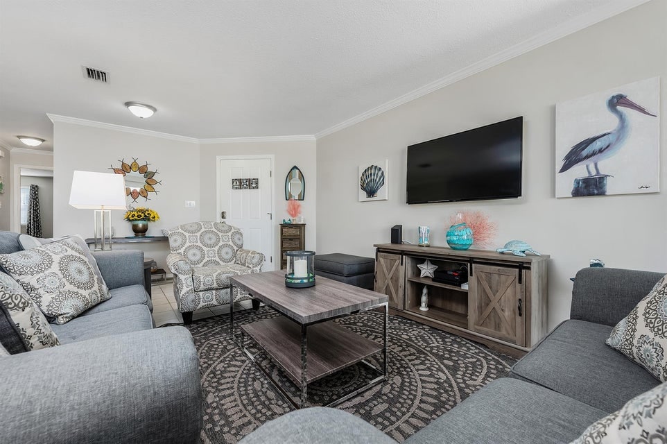 Diese geräumige Wohnung mit einem Schlafzimmer und zwei Bädern ist in beruhigenden Designer-Farben mit Küstengefühl eingerichtet und bietet einen atemberaubenden Blick auf den Golf, aktualisierte Geräte und bietet Platz für sechs Personen. Die Unterkunft verfügt über ein Schlafzimmer mit einem komfortablen Kingsize-Bett, einem Flachbildfernseher und einem eigenen Bad mit Dusche/Badewanne; zwei Etagenbetten in einer Nische im Flur; ein zweites Badezimmer mit Dusche; und eine offene große Küche mit allen neuen Edelstahlgeräten; einen Essbereich und ein Wohnzimmer mit einem Schlafsofa.