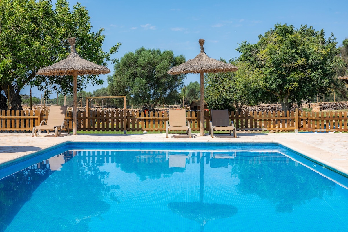 Privates Anwesen von 10.000 m2 Land mit mehr als 4.000 m2 Gärten, Swimmingpool und Kinderspielplatz in unmittelbarer Nähe der besten Strände der Insel Mallorca Sehr komfortables Haus im mediterranen Stil, ideal für Familien mit Kindern, mit 2 Doppelzimmern, 2 Badezimmern , 1 Bad, große Terrasse, Küchenzeile und Geräte aller Art. Klimaanlage, Heizung in allen Zimmern, Wi-Fi, Kinderbett und Hochstuhl für Kinder DIE MAXIMALEN HYGIENE- UND DESINFEKTIONSMASSNAHMEN SIND GEWÄHRLEISTET
