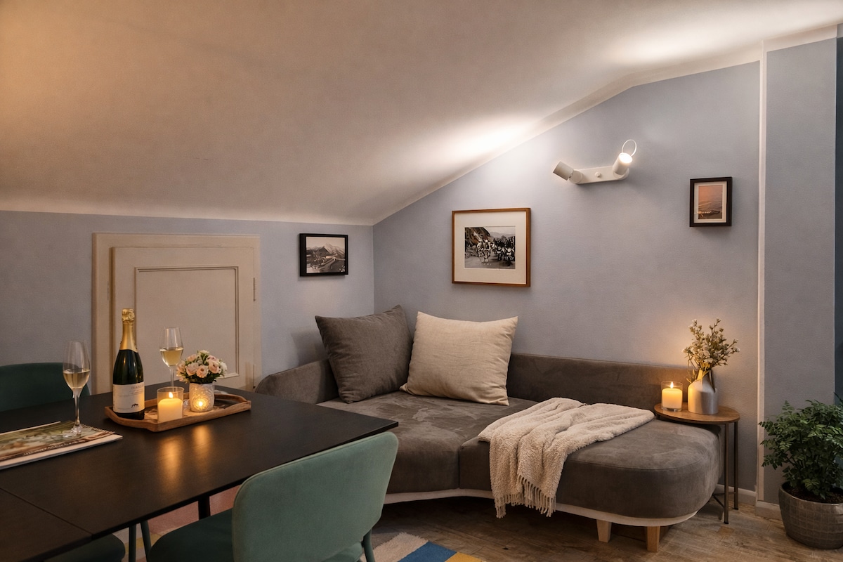 Lehne dich zurück und entspanne dich – in dieser ruhigen, stilvollen Unterkunft, etwas Abseits des Stadtkerns. Wir laden dich ein, unsere kleine „Dachgeschosswohnung“ mit besonders schöner Aussicht zu genießen und Energie zu tanken in unserer einzigartigen Natur- und Bergwelt. Du buchst unser Dachgeschoss in unserer Wohnung mit 2 Schlafräumen, 1 Bad und eine kleine Küchenzeile. Die Küche ist für die Zubereitung eines Frühstückes und Kleinigkeiten gedacht, da kein Abzug vorhanden ist.
