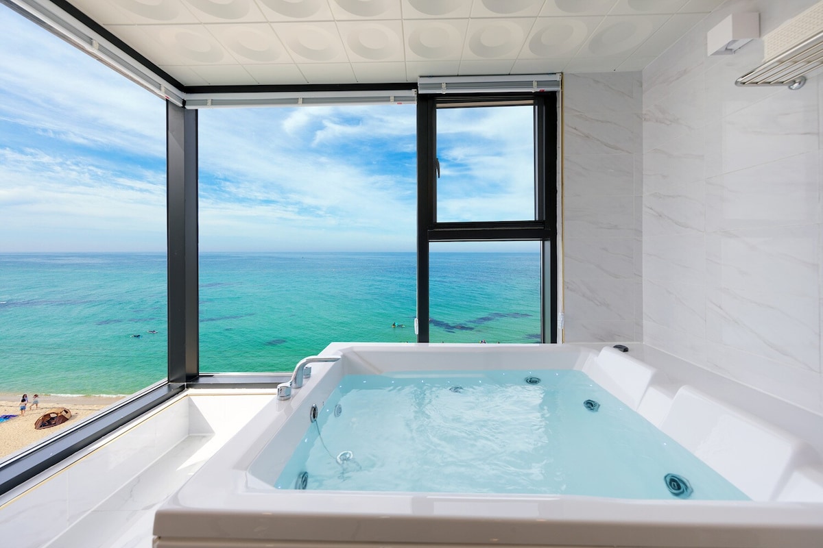 30 pyeong „Suite“ Unterkunft im Hotelstil mit Ondol-Heizung mit 3 Schlafzimmern, 2 Badezimmern, geräumigem Wohnzimmer und Küche # Kühlschrank, Backofen, Mikrowelle, Waschmaschine, Reiskocher, Kapselkaffeemaschine, Trockner, Wasserreiniger, Toaster, Mini-Pool, Mini-Pool, Ankleidezimmer, Ankleidezimmer usw. Es ist ein neu gebautes Hotel vor dem Strand, in dem du für dich selbst kochen kannst, als Reiseunterkunft für Familien, Freunde und Liebhaber. Der Infinity-Pool (in Reparatur) im 28. Stock kann für eine Weile nicht genutzt werden. Lege dich im Schlafzimmer hin, beobachte das Meer und trinke einen Kapselkaffee, um den Morgen mit einem reichhaltigen Morgenkaffee zu begrüßen. Tauche in den Pool im Zimmer (gegen Aufpreis) ein, um die Reisemüdigkeit zu lindern und die Illusion zu spüren, auf dem blauen Meer zu schweben. Genieße den Blick auf Jumunjin und Gyeongpodae zusammen auf der offenen Terrasse, und selbst wenn du nur in der Unterkunft bleibst, ist es eine emotional aufladende Unterkunft, die zu einer Reise wird. Zögere jetzt nicht und geh einfach. Wenn du nur kommst, wird alles in meinem Haus zuerst hier ankommen, also selbst wenn du einfache Kleidung mitbringst, wirst du dich wie in deinem eigenen Zuhause wohlfühlen, ohne irgendwelche Unannehmlichkeiten. Trotzdem zögerst du~~^^gogo