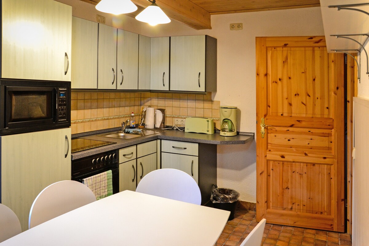 Freundliche und großzügige Ferienwohnung in der ersten Etage im ländlichen Stil. Knapp 100 qm Wohnfläche bieten ausreichend Platz für bis zu neun Personen. Unsere Empfehlung für die Belegung liegt bei sechs Personen und einem Kleinkind. Die Wohnung besteht aus dem Eingangsbereich mit Sitz- und Schlafecke, zwei Hauptschlafzimmern, einer gut ausgestatteten Küche und einem großen Bad. Auch ein Kinderbett für kleine Kinder steht zur Verfügung. In der geräumigen Küche ist Platz zum Kochen und Essen.