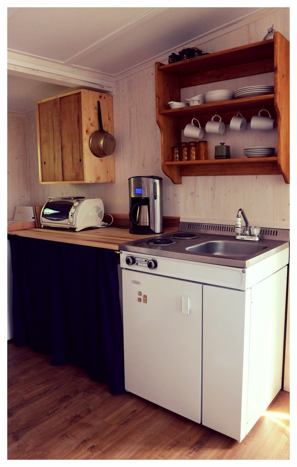 Chalet am Ufer des Saguenay. Fläche von 440 Quadratfuß (40,9 Quadratmeter). Es bietet 2 Schlafzimmer (ein Doppelbett und ein Queensize-Bett), ein Bad mit Dusche, Haartrockner, eine voll ausgestattete Küche sowie ein Wohnzimmer mit TV (Netflix, Prime Video, Disney+, Crave, AppleTV). Internetverbindung über WLAN bis zu 1000 Mbit/s. Ein Holzkohlegrill ist ebenfalls vor Ort vorhanden.