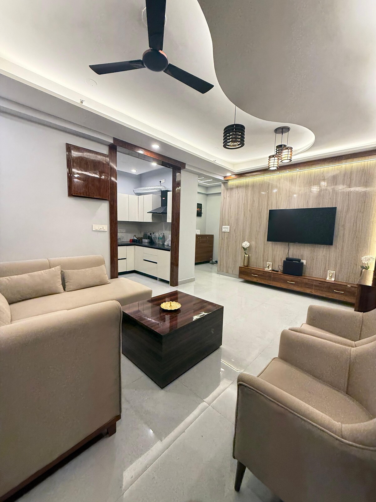 Welcome to Grand Suites! Our luxurious fully air conditioned accommodation has 2 ultra-spacious bedrooms, 2 attached bathrooms, ultra spacious living area and a fully-equipped kitchen with dinning room Enjoy the one-of-a-kind, 3000 sq ft open green private terrace with beautiful lighting , perfect for small gatherings,events and catering facilities also available , Book now for the ultimate luxury living experience! Extra suites or Bedrooms are also available for larger groups