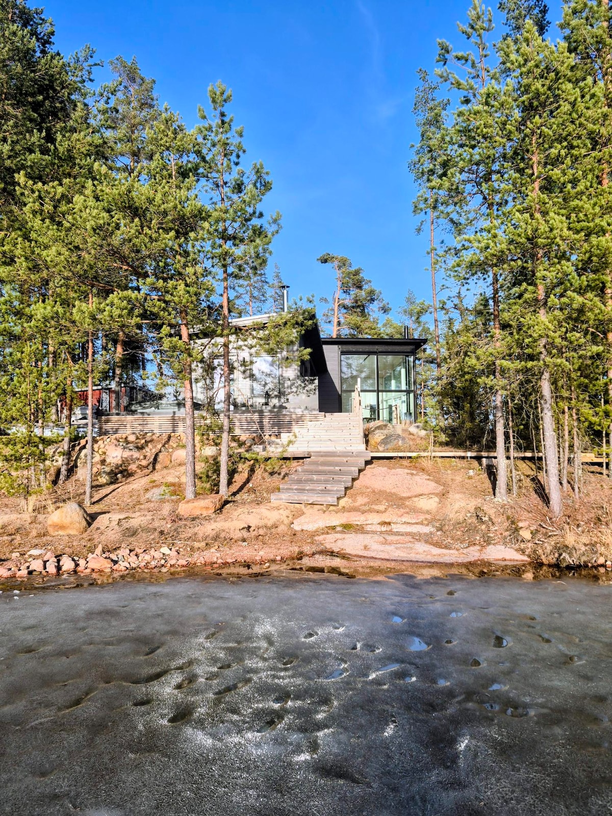 Eine ruhige Villa im Wald, am Ufer eines idyllischen Teiches in Jaala Uimala. Ein friedliches Refugium, umgeben von einem wunderschönen Kiefernwald. Raum zum Atmen und um sich von der Hektik des Alltags zu lösen, umgeben von echter Waldwildnis. Gemütlich eingerichtete, warme, gut ausgestattete, winterfeste Villa, die bequem 2-4 Personen beherbergt. In Verbindung mit der Villa befindet sich eine holzbeheizte Fasssauna, von der aus man bequem über den Steg zum Schwimmen gelangt. Die umliegende Landschaft bietet sich mit ihren gewundenen Pfaden und Heidelandschaften für verschiedene Outdoor-Aktivitäten an.