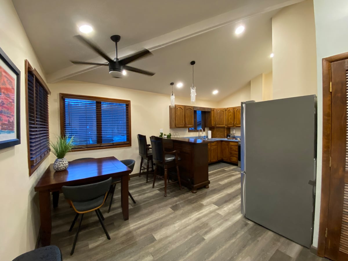 Großes offenes Konzept, familienfreundlich, schläft bis zu 10 in 4 Schlafzimmern, extra ausklappbar,bietet hochmoderne Beleuchtung und Annehmlichkeiten mit Smart-TV in allen Schlafzimmern und Ladestationen. Voll ausgestattete Küche, mit Weinkühlschrank unter der Theke. Vollständige Wäscherei, Gaskamin mit automatischem Thermostat. Parken 4 Autos auf der Vorderseite mit Carport und möglichen 5 Plätzen hinten. In einer kleinen Stadt in der Nähe von Parks, Gas, Restaurants, Lebensmittelgeschäften, antiquitäten-Shopping, Apotheke und Interstate. Wandern & Radfahren