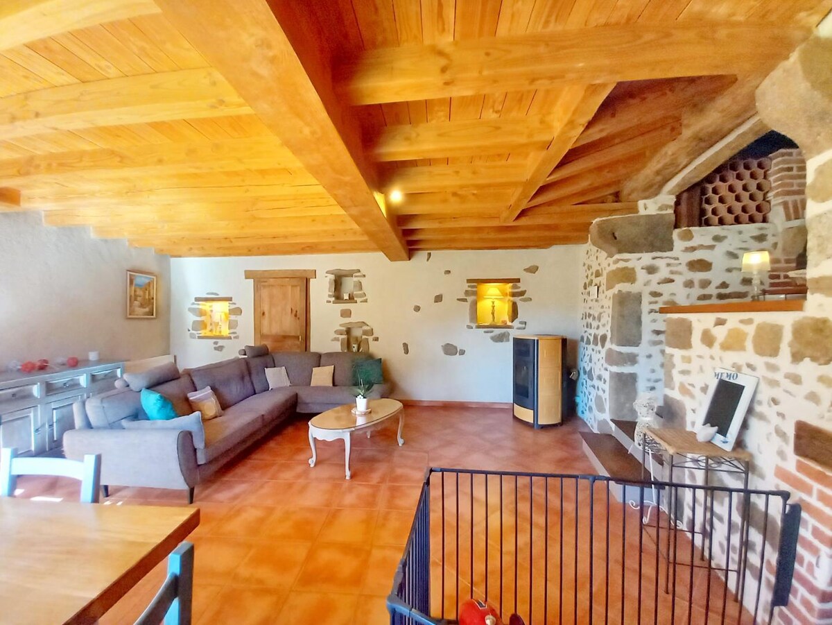 Ruhig ,ein komfortables und geräumiges Haus für die ganze Familie:3 Schlafzimmer im Obergeschoss:1 Schlafzimmer mit 1 Bett für 2 Personen + TV +Kinderbett, 1 Schlafzimmer mit 2 Betten für 1 Person+ Gitterbett, 1 Schlafzimmer mit Doppelbett +Waschbecken, Küche, Esszimmer mit Kamin , TV-Sofa + Sessel ,Terrasse Außentisch, Sonnenschirm, Grill, Liegestühle und umzäunter Garten,zugänglich direkt vom Schiebefenster, privater Parkplatz, unabhängiger Zugang. Haustiere im Freien akzeptiert. Bücher vor Ort und Broschüren .