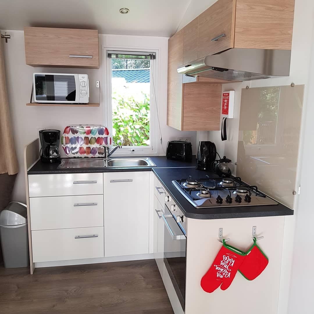 Neueste Mobilheim komplett in einem 4-Sterne-Campingplatz 2 Schritte vom Meer ausgestattet.. Sie werden knacken! Sehr gut ausgestattet, bietet die Unterkunft ein geräumiges Wohnzimmer und viel Stauraum in jedem der 3 Schlafzimmer. Die Küche ist voll ausgestattet (Geschirr, Kaffeemaschine, Toaster, Backofen, Gasherd 4 Flammen..). Das Badezimmer ist vom WC getrennt. Die halbüberdachte Terrasse bietet Ihnen einen zusätzlichen Wohnbereich, in dem Sie mit der Familie zu Mittag essen oder in der Sonne liegen können. Schönen Urlaub!