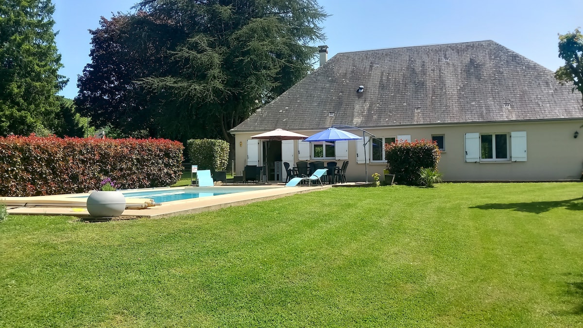 Kommen Sie für Herbst/Winter 2025/6 mit 30 % Rabatt!! (Bereits angewendet) Ein charmantes Bauernhaus auf 10 Hektar Land, in beneidenswerter Lage mit außergewöhnlicher Aussicht. Zu jeder Jahreszeit genossen zu werden. Suche im Frühling nach Orchideen; faulenzen im Sommer am (Gemeinschafts-) Infinity-Pool; genieße im Herbst gebratenes Fleisch und Kastanien im Kamin oder gemütlich neben dem Weihnachtsbaum mit der Familie im Winter. Saint Robert, eines der „Les Plus Beaux Villages des France“, ist nur wenige Minuten entfernt oder 20 Minuten zu Fuß.