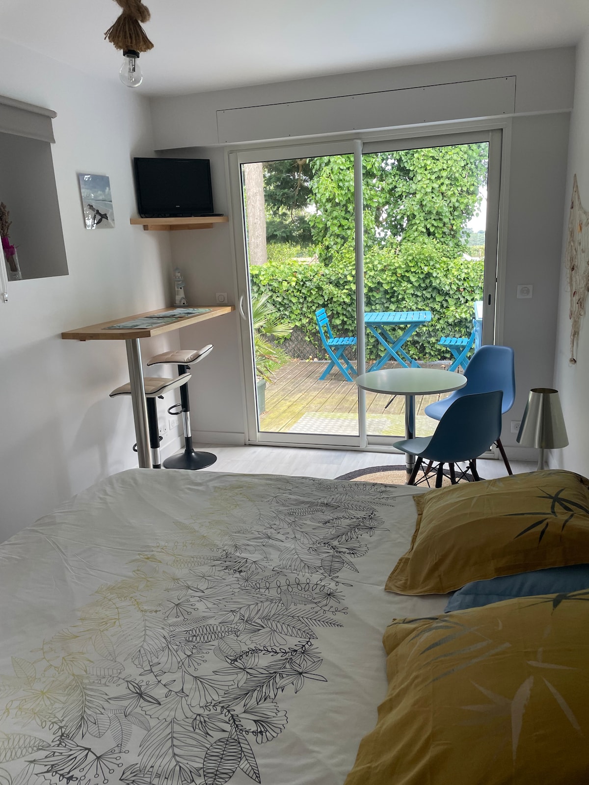 Möblierte Einzimmerwohnung 10 Min. zu Fuß zum Strand und Zugang GR 34. Zwischen Saint Malo (15 Minuten von Intramuros) und Cancale (10 Minuten vom Austernmarkt) In der Nähe aller Geschäfte. Studio bestehend aus einem Wohnzimmer mit Schlafsofa, TV, einer Küchenzeile mit Spüle, Kühlschrank, Herd, Mini-Backofen, Mikrowelle, Kaffeemaschine und einem Badezimmer. Außenterrasse mit Tisch und Stühlen, Grill, Liegestühlen.