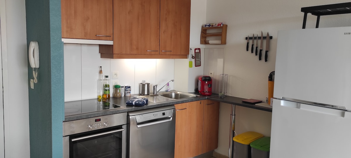 Angenehme Wohnung vor den Toren von Perpignan mit Garten und Parkplatz in einer gesicherten Residenz mit Zugang zum Pool für die Monate Juli und August. Genießen Sie die Nähe zum Stadtzentrum mit dem Bus und dem Auto oder besuchen Sie die Umgebung während Ihres Urlaubs oder Ihrer Geschäftsreise. Das Studio besteht aus einem Badezimmer, einem Schlafbereich und einer Küche mit Blick auf den Garten, um die mediterrane Sonne zu genießen. Unglaubliches Bett EVE 160 x 200.
