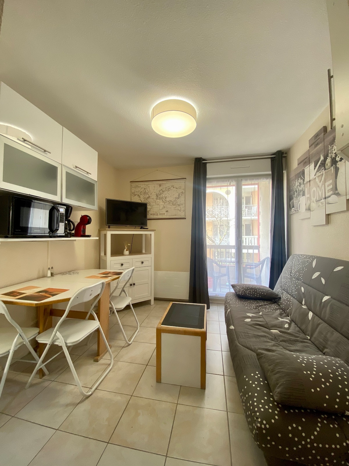 Charmantes Studio von 17 m2 im 1. Stock einer ruhigen, sicheren Residenz mit kostenlosen Parkplätzen. Ideal gelegen, 10 Min. zu Fuß zum Thermalbad und zum Stadtzentrum. Das Studio ist komplett ausgestattet. Es verfügt über ein Schlafsofa für 2 Personen und ein Einzelbett. Die Küchenzeile ist mit einem Kochfeld, einem Kühlschrank, einer Mikrowelle, 2 Kaffeemaschinen, einem Wasserkocher und einem Toaster ausgestattet. Zusätzlich gibt es einen Fernseher und WLAN. Eine Wäscherei ist auch in der Residenz vorhanden.