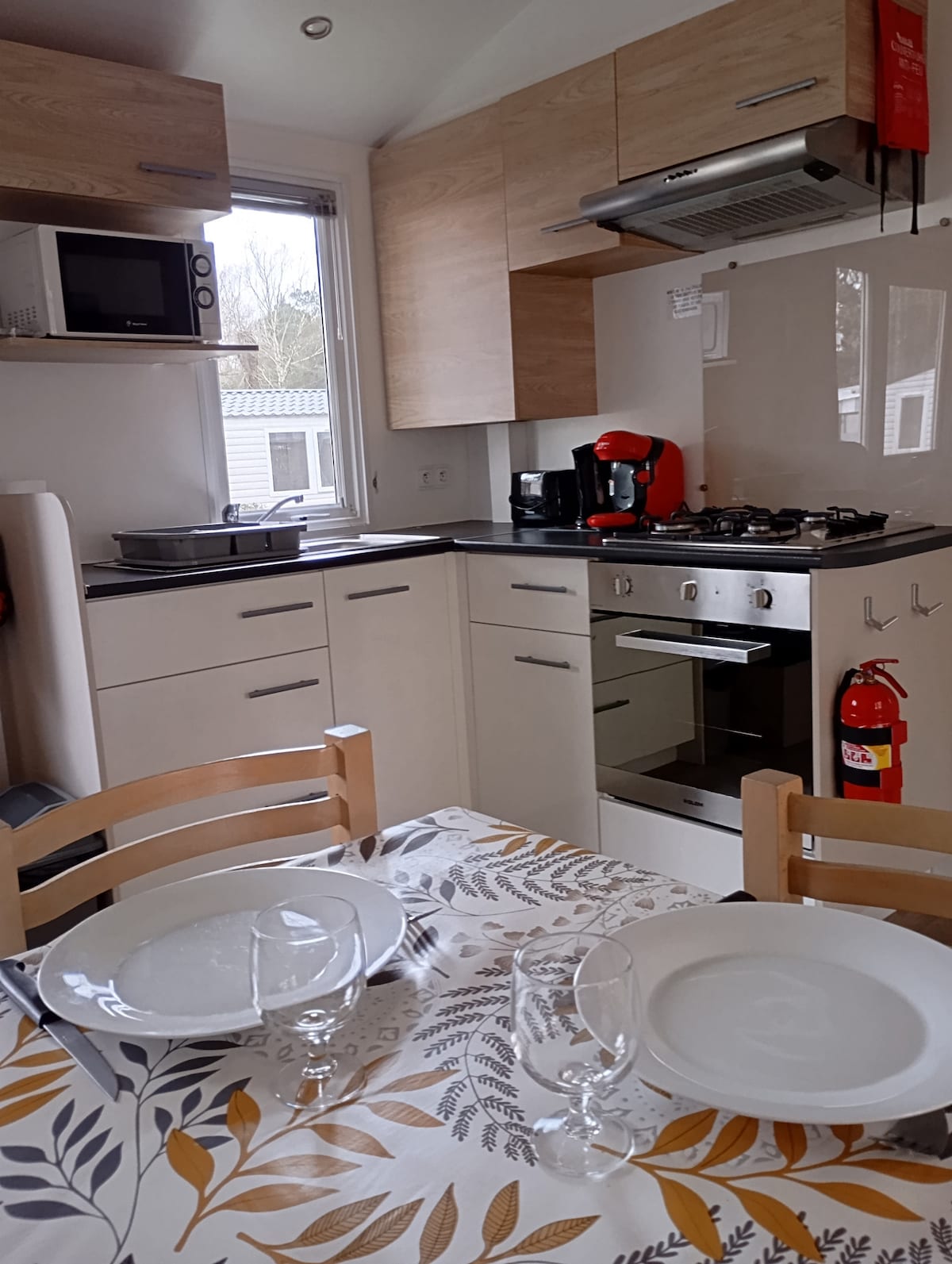 Mobil home au calme dans un cadre naturel et verdoyant entre mer et forêt. Un séjour de détente entre famille et/ou amis. Diverses activités sont proposées au sein du camping. Un minimum de deux nuits ( hors saison) et mini 4 nuits en saison et un maxi de trois semaines consécutives. À votre disposition un barbecue à gaz, télévision, un kit démarrage offert (éponge, papier toilette, chiffonnette et sac poubelle), grand frigo, cafetière, torchon et essuie main . Lits fait à votre arrivée