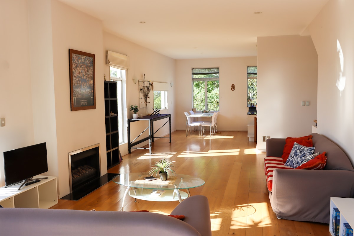 Hoch auf dem Grafton Hill, hat dieses 3-stöckige Stadthaus hohe Ständer, weitläufige Freiflächen, viel Sonne nach Norden und Blick auf Rangitoto Island, Tiri Tiri Matangi und die Bombay Hills. Eingerichtet in einem ruhigen, entspannenden Stil, mit viel Platz für Yoga oder Unterhaltung. In der Nähe des CBD, der K Rd, des Auckland Hospital, der Auckland University, der Auckland Domain und nur einen Steinwurf von allen Autobahnen entfernt, kannst du dich in dieser ruhigen, stilvollen Unterkunft zurücklehnen und entspannen, während du in der Nähe des Geschehens bist.