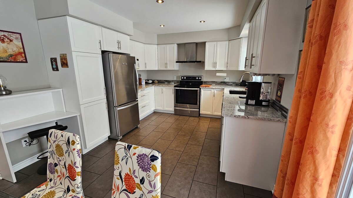 Soyez les bienvenus au Petit Bonheur. Vous avez accès à votre entrée privée autonome avec serrure digicode et accès au stationnement double . Le logis de 450 pieds carrés qui se trouve au sous.sol est très bien aménagé , bien éclairé par grande fenêtre, insonorisé, calme et discrétion garantie. Wi-Fi haute vitesse Nous vous offrons un panier de bienvenue. Bon séjour parmi nous Normand et Manon