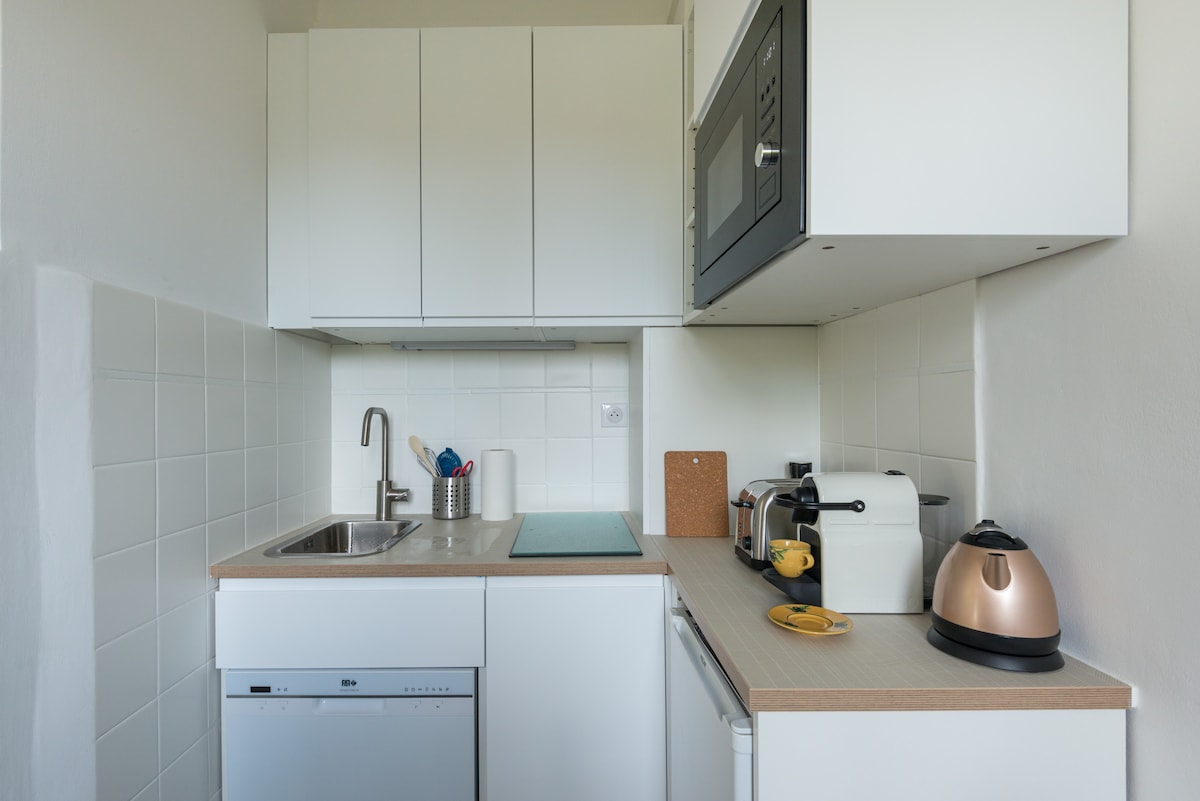 bilocale weiß und hellblau, ist voller Licht!Übernachten Sie in unserem charmanten, hell beleuchteten Apartment mit einem Schlafzimmer in Saint Jean Cap Ferratganz in der Nähe von Italien. Lassen Sie sich vom Rauschen der Vögel und dem hellen mediterranen Sonnenlicht wecken, bevor Sie nach draußen zu den vielen lokalen Cafés und Restaurants in der Stadt direkt vor der Tür gehen, oder zu dem ersten von vielen Stränden, die nur fünf Gehminuten entfernt sind, oder zu den Fußwegen, die Sie zu einem herrlichen Spaziergang um die Halbinsel führen. Diese schöne, neuere Wohnung ist mit einem gemütlichen Wohnzimmer, vielen Fenstern, um die Sommerbrise und unvergleichliches Licht der Côte d 'Azur zu genießen, gefensterter Küche mit Elektroherd und Bereich, ein Schlafzimmer, wo Sie unter einem Fresko schlafen und genießen Sie die Querströme der Brise durch das Fenster im Zimmer erlaubt Das Badezimmer verfügt über eine große Badewanne mit Handbrause und das Apartment ist mit einer Waschmaschine ausgestattet. Wir sind in einem kleinen Gebäude, einen Treppenaufzug hoch. Wenn du die Tür öffnest, laden wir dich ein, unser Zuhause zu teilen und dich an den vielen Freuden und Freuden zu erfreuen, hier in Südfrankreich zu leben! ***Bitte beachte, dass dies ein NICHT RAUCHENDES Apartment ist. Absolut keine! *** Puo' ospitare comodamente 2 persone, ha una cucina moderna ma romantica perfettamente attrezzata, plus eine Waschmaschine. Nel centro della penisola del posto piu' bello del mondo,si possono raggiungere a piedi 4 spiagge diverse, ristoranti supermarkt,hafen.