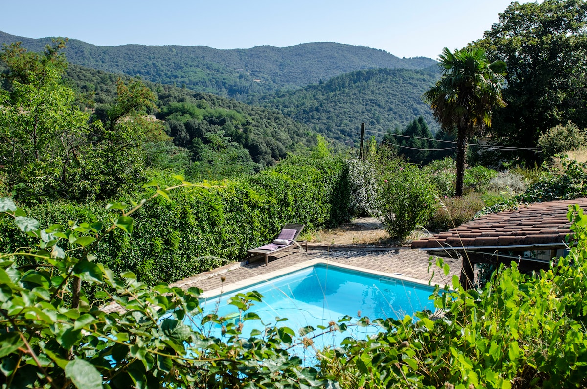 Im Nationalpark der Cevennen am Rande der GR 6-7 wohnen Sie in diesem Häuschen mit herrlichem Blick über 50 km in den Bergen von einer großen Terrasse aus. Für eine Einzelperson oder ein Paar. Ein großes Zimmer von 30 m² mit separatem Bad und Küchenbereich tt ausgestattet.Internet 24 h/24 hd .Ein idealer Ort zum Entspannen und Telearbeit. Bettwäsche wird zur Verfügung gestellt. Natürlicher Pool von Mitte Mai bis Ende September je nach Temperatur.Achtung, Sportzugang über Wanderweg und Stufen.