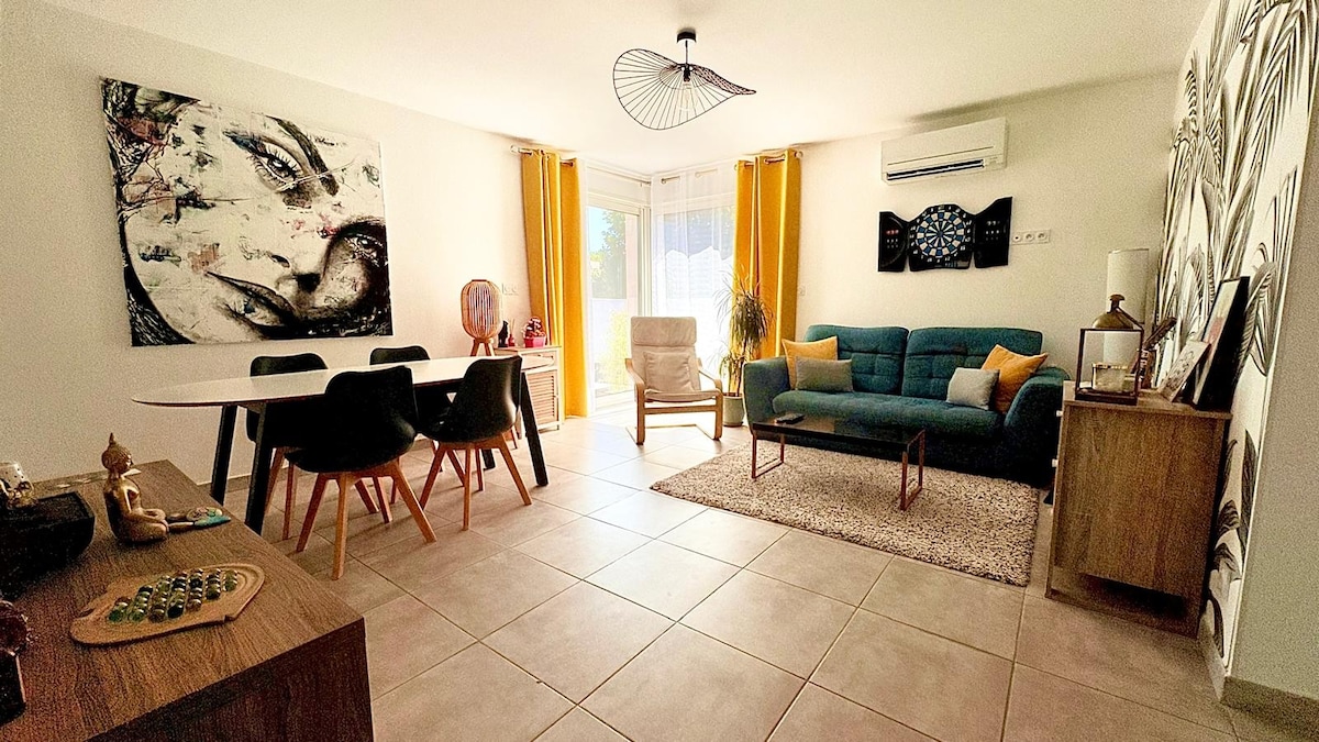 Bienvenue dans notre belle villa à Lunel, idéale pour des vacances en famille avec tout le confort nécessaire et bien clôturée : ✨ Piscine privée & jacuzzi pour des moments de détente 🛏️ 3 chambres (dont une avec cloison persiennée) 1 canapé-lit dans le salon (8 couchages) 🍽️ Cuisine équipée & grand séjour lumineux 🌿 Terrasse & jardin pour des repas en plein air. Idéalement située entre Montpellier et Nîmes, à proximité des plages et des sites touristiques.