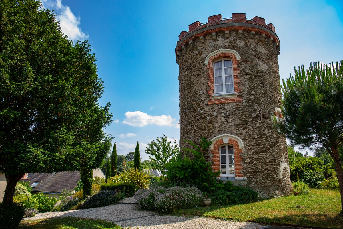 Es ist selten, eine Unterkunft zu finden, die sowohl historisch als auch einzigartig ist. Auf den Höhen des Dorfes La Pointe bietet diese alte Mühle aus dem 16. Jahrhundert, die in einen neugotischen Turm im 19. Jahrhundert umgewandelt wurde, einen atemberaubenden Blick auf den Zusammenfluss von Maine und Loire. Nur wenige Schritte entfernt erwarten Sie der freundliche Place Ruzebouc mit seinen Cafés und Restaurants. Angers, sein Schloss, seine Museen, Terrabotanica sind nur wenige Autominuten entfernt. Schöne Spaziergänge entlang der Loire.