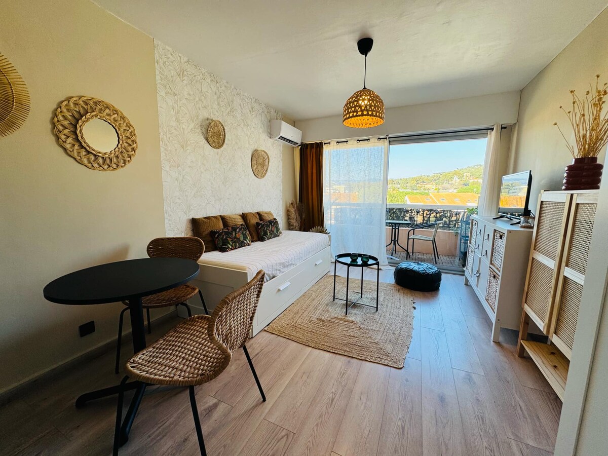 Hervorragende Wohnung im Loft-Stil von ca. 40 m2 mit integrierter Küche, Kühlschrank und Waschmaschine, separatem WC, Bett 160 cm mit hohem Komfort und Schlafsofa, mit Blick auf den schönsten Strand von Bandol. Außergewöhnlicher Meerblick, auf den Strand von Renécros, Hafen und Stadtzentrum zu Fuß, privater Parkplatz mit elektrischer AUFLADESTATION für Auto, ganz neu.