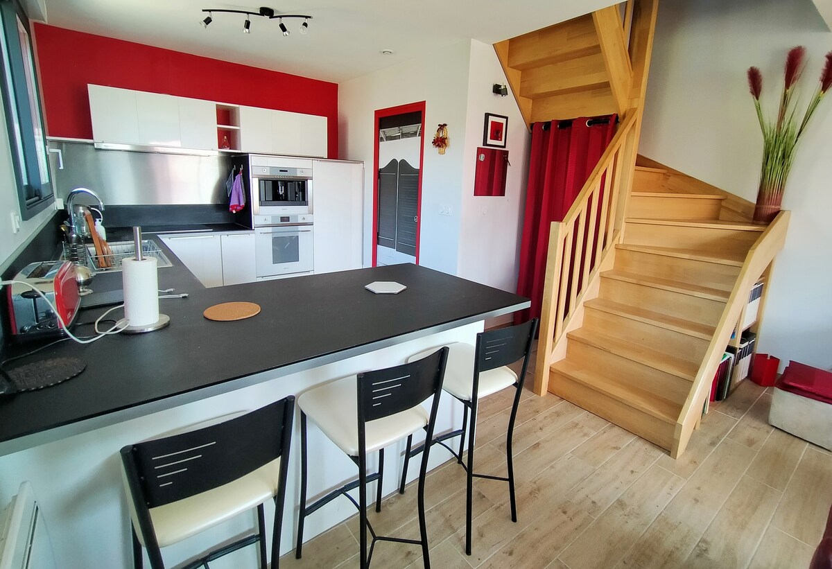 Für eine Pause auf dem Weg in den Urlaub oder für einen längeren Aufenthalt werden Sie die Ruhe und den Komfort zu schätzen wissen. Auf der Südterrasse genießen Sie einen atemberaubenden Blick auf die Berge. Von seinem Inneren, besonders gut ausgestattet, werden Sie sich wie in einem kleinen Haus fühlen. 3 Skigebiete sind innerhalb von 45 Minuten zu erreichen. Lac du Bourget und historische Städte (15 bis 20 Min.). Um Sie besser willkommen zu heißen, stelle ich Ihnen das Wesentliche zur Verfügung (Zucker, Öl, Essig, Salz, Gewürze, Kaffee, Schokolade, Kräutertee...)