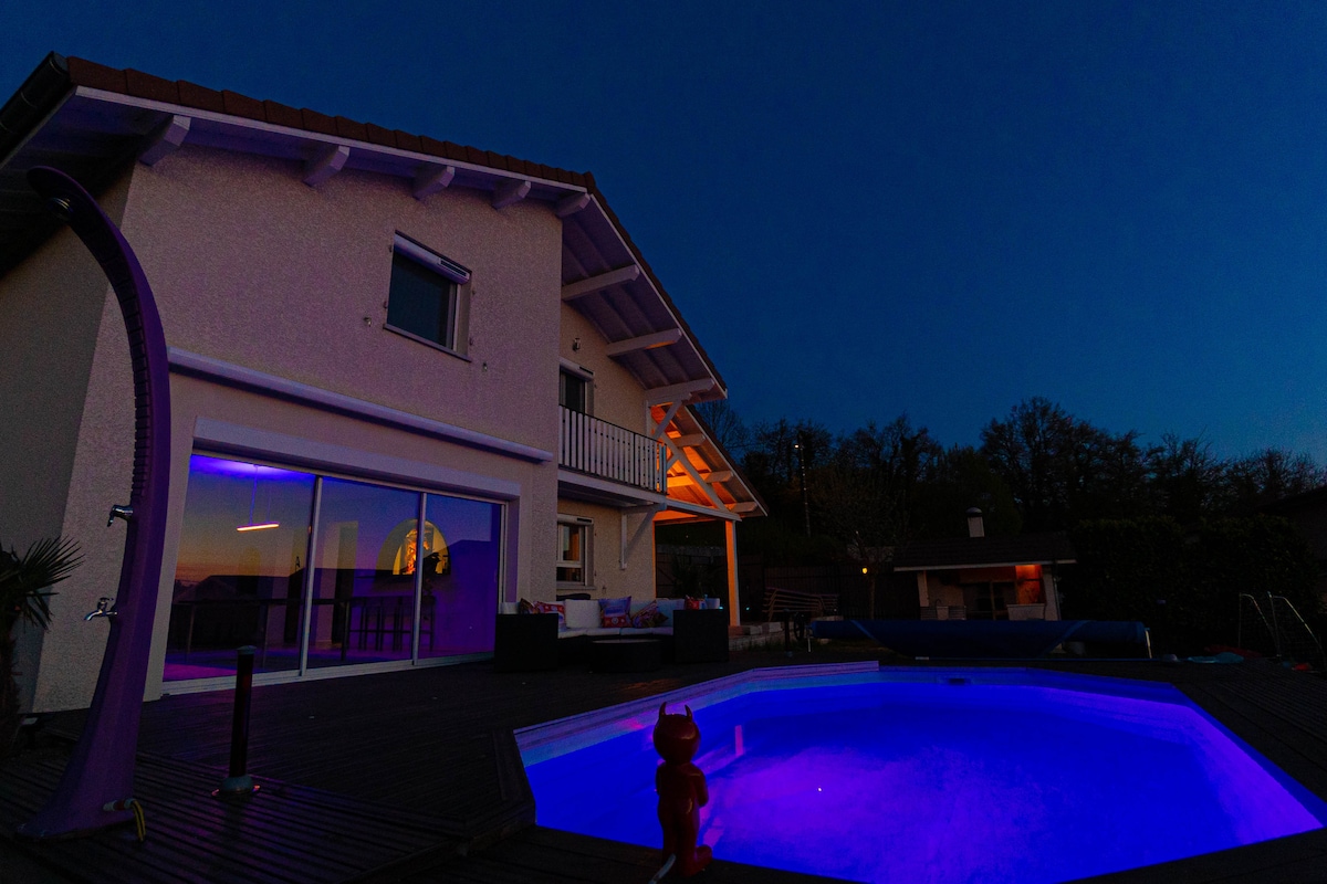 Notre villa, Kyo-Alpes, construite en 2024, est située à la Combe de Lancey, entre Chambéry et Grenoble, et offre une vue imprenable sur les montagnes. Le logement dispose d’une piscine intérieure privée chauffée à 29 °C, d’un espace jacuzzi ainsi que d’un sauna, pour vous détendre dans une atmosphère zen et apaisante. Une décoration intérieure inspirée du style japonais apporte élégance et originalité. Venez découvrir la nature environnante et le charme du Japon au cœur des Alpes