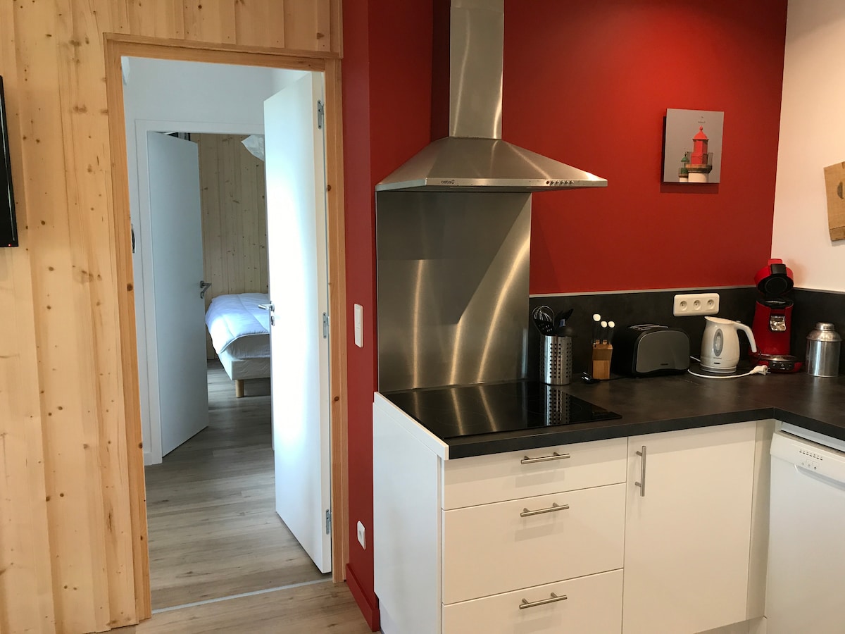 Studio of 19m² located on the garden level of a private villa. It has its own independent entrance, a private terrace facing south, and access to the heated swimming pool from May 1st to September 15th. It includes a fully equipped kitchen, a convertible bed (160x200) with a slatted base; a 17 cm mattress, and a bathroom with a shower, bathtub, electric towel dryer, and toilet. A path will lead you through the dune directly to the ocean in 2 minutes. The city center is a 7-minute walk away.