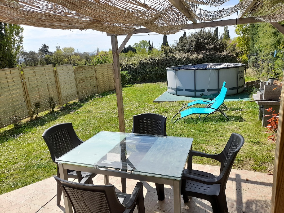 In einer natürlichen Umgebung auf einem bewaldeten Grundstück von 4600 m2. Genießen Sie einen erholsamen Schritt (Bettwäsche und Handtücher werden zur Verfügung gestellt). In der Nähe des Canal du Midi. Radweg des Canal du Midi auf 100 m. Unabhängiges Studio im Erdgeschoss unseres Haupthauses. Eigenständige Ankunft möglich. Eigener Eingang. Parken vor der Wohnung auf unserem eingezäunten Grundstück. Möglichkeit, Fahrräder unterzustellen. Lebensmittelgeschäft, Bäckerei und Wäscherei geöffnet 7/7 7:00 - 19:30 Uhr 800 m.