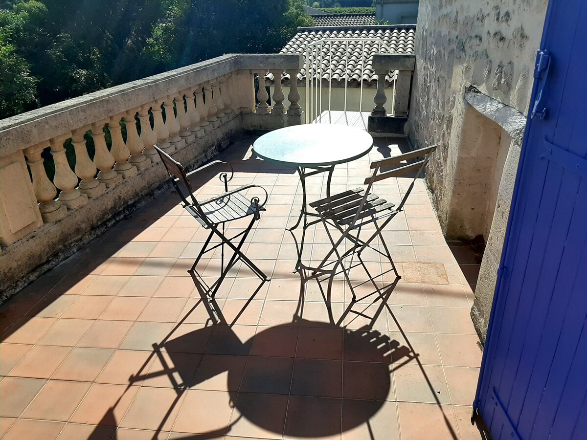 Bonjour, Je vous accueille chez moi, dans une charmante dépendance de la maison, pour un séjour au cœur des vignes dans le village de Grézillac, à 15 minutes de Saint Émilion. Le logis se compose d’un grand salon, d’une cuisine, d’une chambre avec baignoire et d’un jardin. Idéalement située, en plus des paysages viticoles vous pourrez vous rendre facilement à Bordeaux, sur le bassin d’arcachon ou en Dordogne. A très vite !