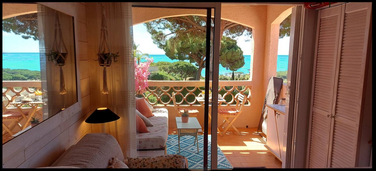 30km from Saint Tropez and Cannes , Apartment of 25 m2 4 beds (New double bed the 16th of October 2017), Terrasse 20m2 Nice Sea view, in a Residence near a sand Beach (50m of the 1st Sand Beach) with Big Swimming pool, 2 Tennis court, between Forest and Sea, Wifi We provide sheets and towels and linens for all Renters. Please indicate precisely the number of people to best prepare your arrival.
