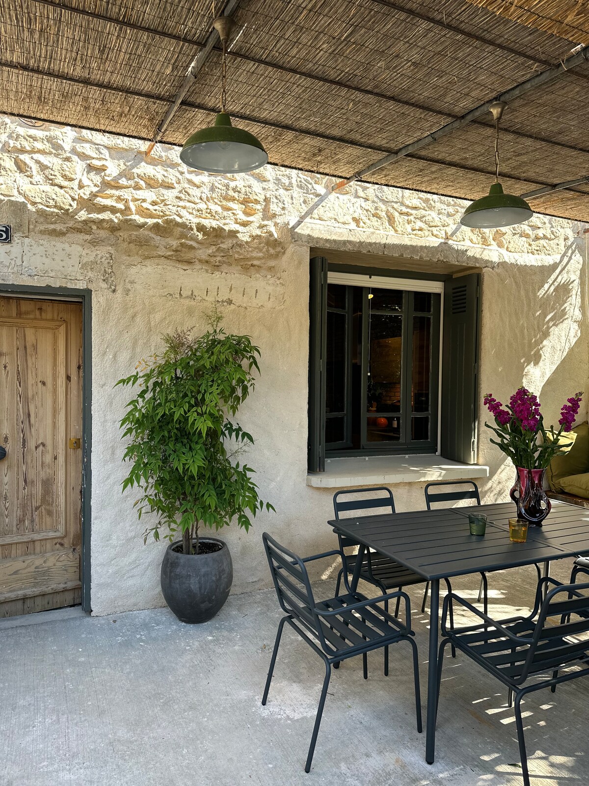 Entspanne dich mit Familie und Freunden im „Le Palmier“, deiner eigenen privaten und ruhigen Oase mit ihren wunderschön eingerichteten und voll klimatisierten 4 Schlafzimmern, 3 1/2 Badezimmern, einem großen beheizten Pool, einer schattigen Terrasse für Mahlzeiten im Freien, einem geschlossenen Garten, einem Boule-Platz und sicheren Parkplätzen, nur 10 Autominuten von Saint-Rémy-de-Provence und einen kurzen Spaziergang vom malerischen Dorf Maillane entfernt, wo du Cafés, Restaurants, die Dorfbäckerei, Lebensmittelgeschäfte und Tennisplätze in weniger als einem Kilometer Entfernung findest.