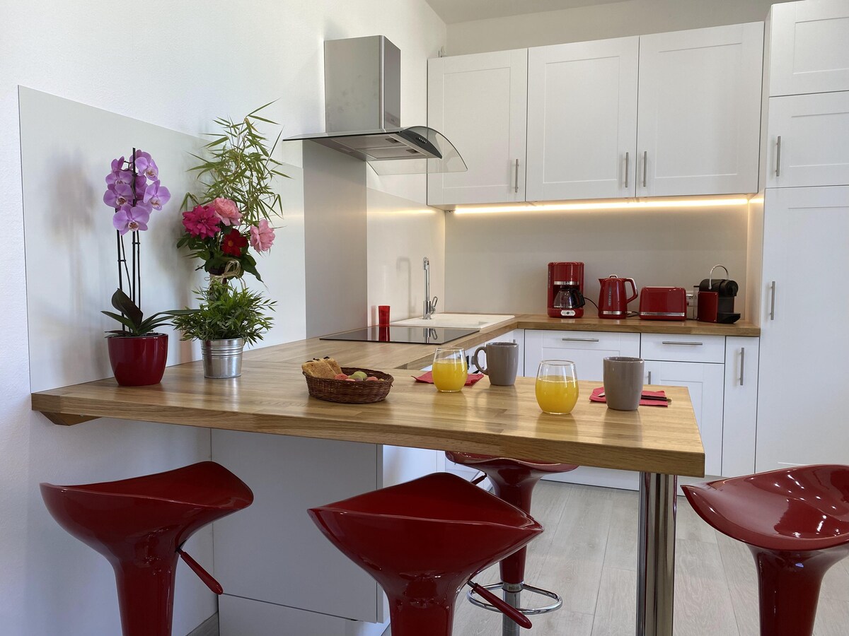 ✔️Schöne Unterkunft von 50 m2 + 11 m2 Terrasse, um den Sonnenuntergang im Herzen einer ruhigen Residenz mit Pool zu genießen ✔️Ideal gelegen an der Weinstraße, 2 Minuten von der Autobahnausfahrt Chalon Süd und den Geschäften, 5 Minuten von Framatome oder sogar dem Stadtzentrum von Chalon entfernt Vollständige ✔️Ausstattung: ▪️TV/WLAN Netflix, Prime Video, Disney+ ▪️Gartenmöbel, Grill ▪️Nespresso-Kaffeemaschine, Kaffee ▪️Geschirrspüler, Maschine, Mikrowelle Komplette ▪️Betten ▪️Handtücher, Duschgel ▪️Mobile Klimaanlage, Dyson…